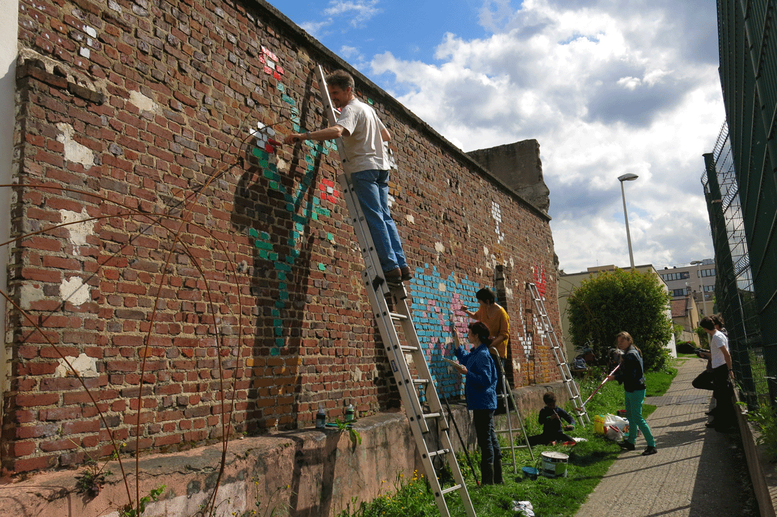 D’avril à juin 2019 des ateliers de plantation et de street art ont été proposés afin de recréer cet espace avec les habitants. Habitants et artistes ont conçu des structures en fer à béton, trois fresques et une palette végétale composée de vingt grimpantes et autant de framboisiers et cassis.