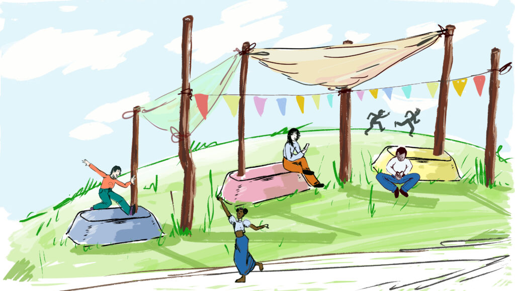À partir d’octobre, nous revenons à Épinay-sous-Sénart pour une deuxième année pour accompagner artistiquement les espaces en transformations durant le temps du chantier. Avec les habitant.es et l’équipe artistique, nous allons déployer un univers plastique et narratif autour de la fabrication d’une « créature-sculpture » de quartier qui s’installera dans les espaces verts de la résidence. Conçue à partir de matériaux de réemploi, elle sera le support des transformations concrètes et symboliques des espaces en chantier par une mise en récit de l’imagination des locataires. Elle deviendra un espace de jeux et un support pour des moments partagés : ateliers, repas, projections en plein air… Avec l’envie de transformer peu à peu l’espace public en un lieu vivant, accueillant et fait à plusieurs mains !