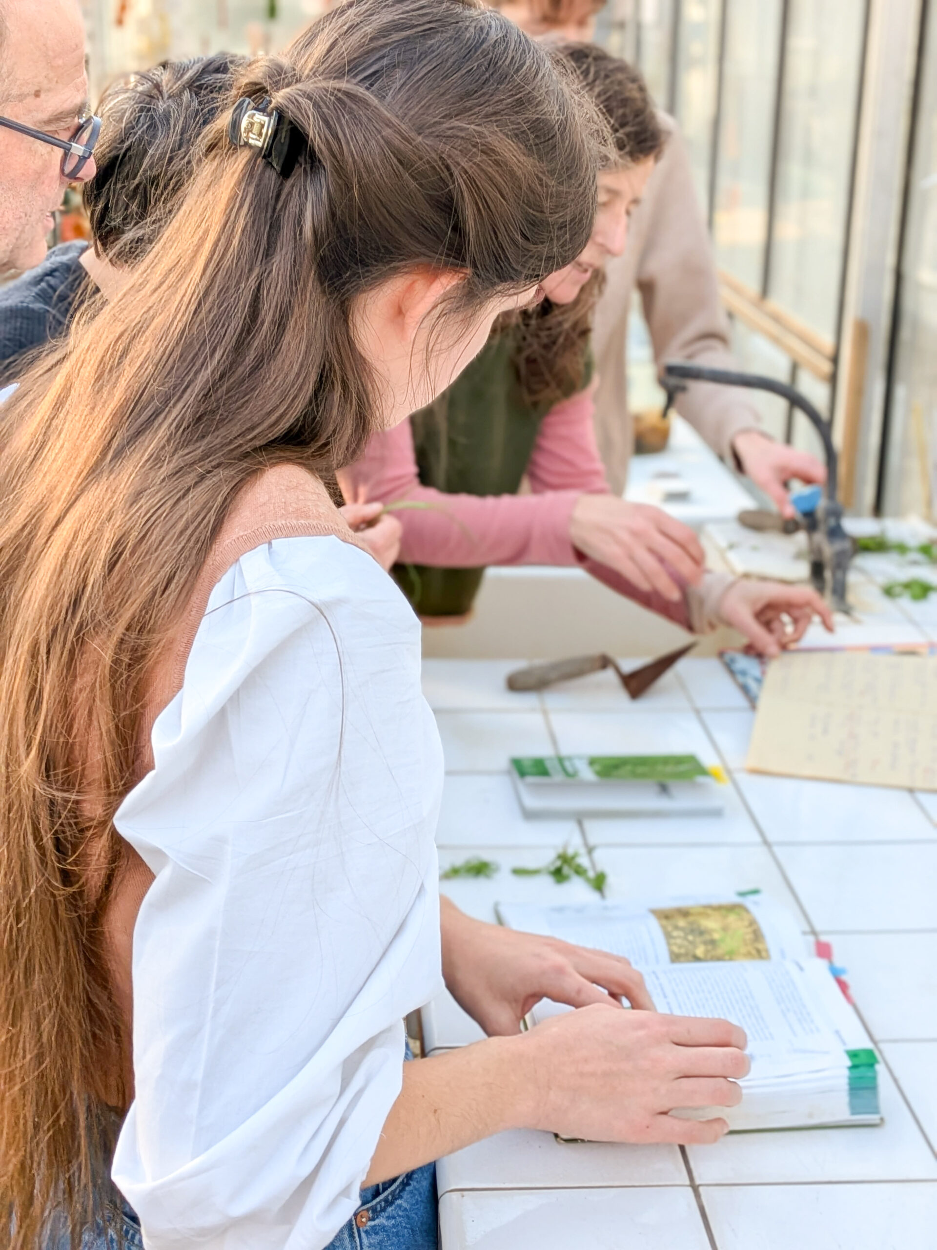 les plantes locales et sentinelles – le blé et le cirse des champs – en compagnie de chercheuses présentes sur le Plateau.