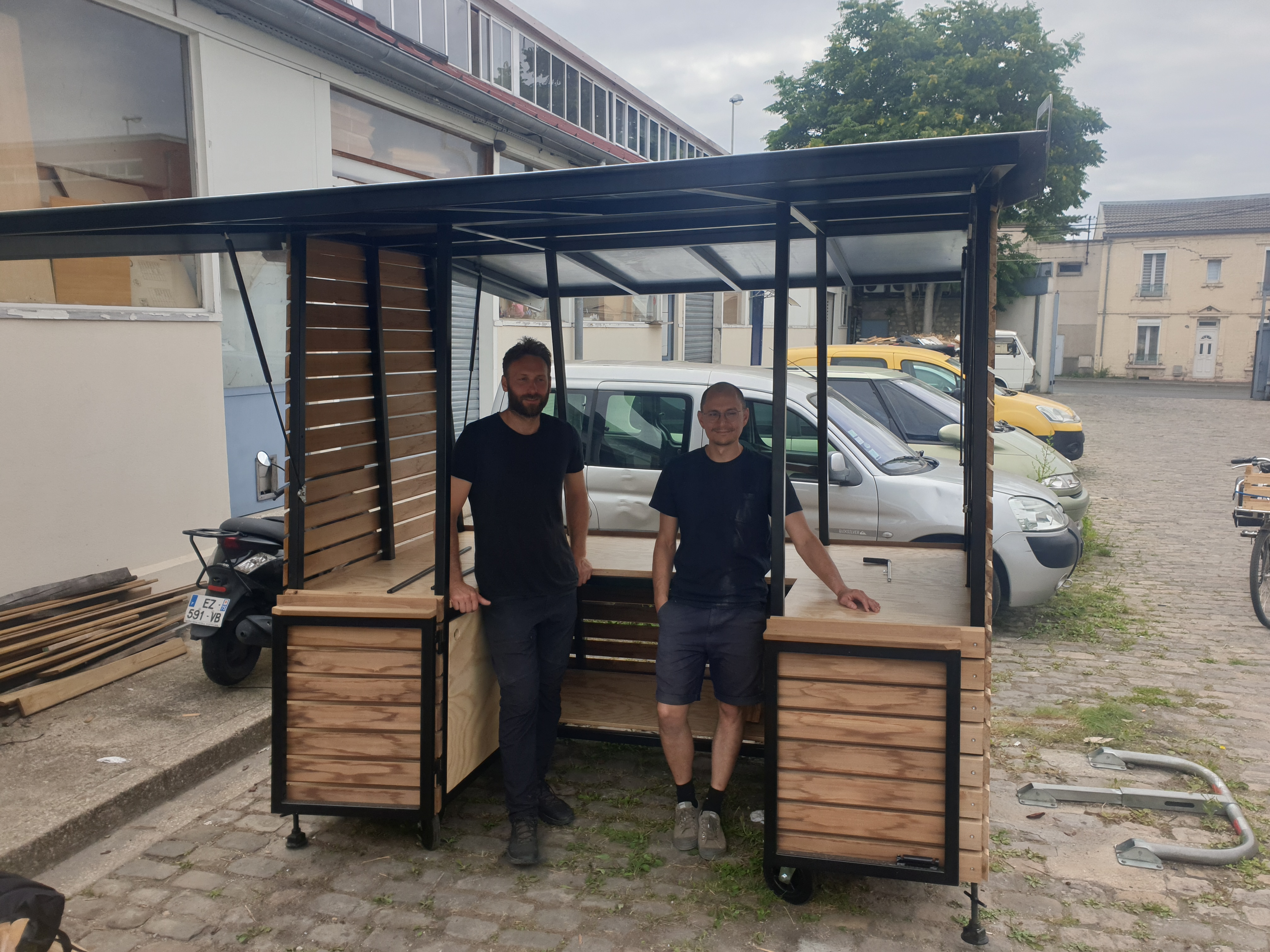 Dans le cadre du budget participatif de 2018 d’Arcueil, le collectif Laplace et la ville d’Arcueil convient Des ricochets sur les pavés pour la réalisation d’un kiosque sur la placette qui jouxte Anis-Gras.